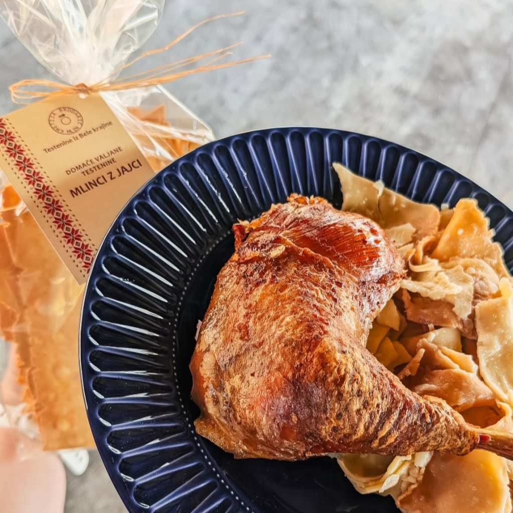 Tradicionalni mlinci slovenske kuhinje, pripravljeni iz pšenične moke in jajc ter ročno razvaljani in pečeni.