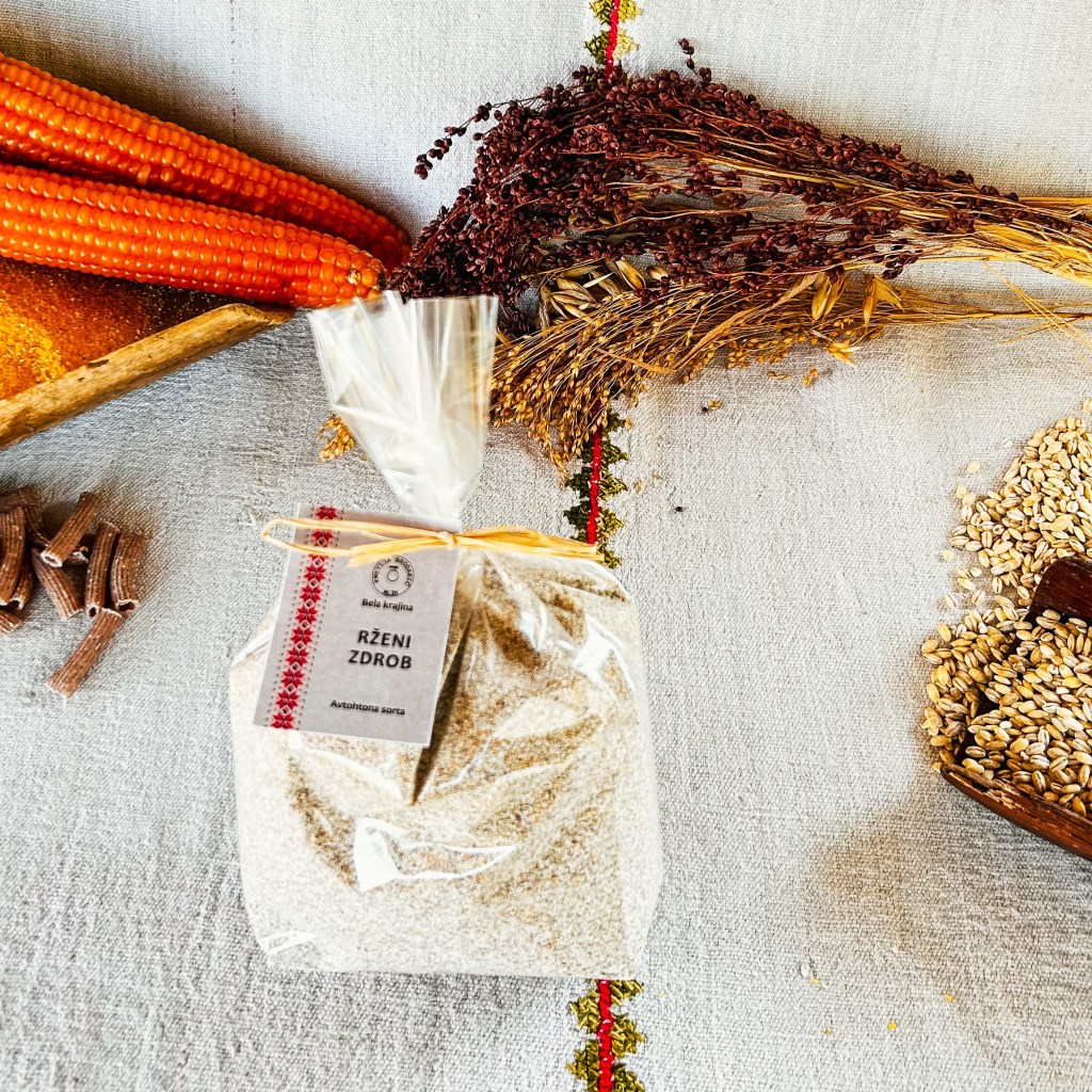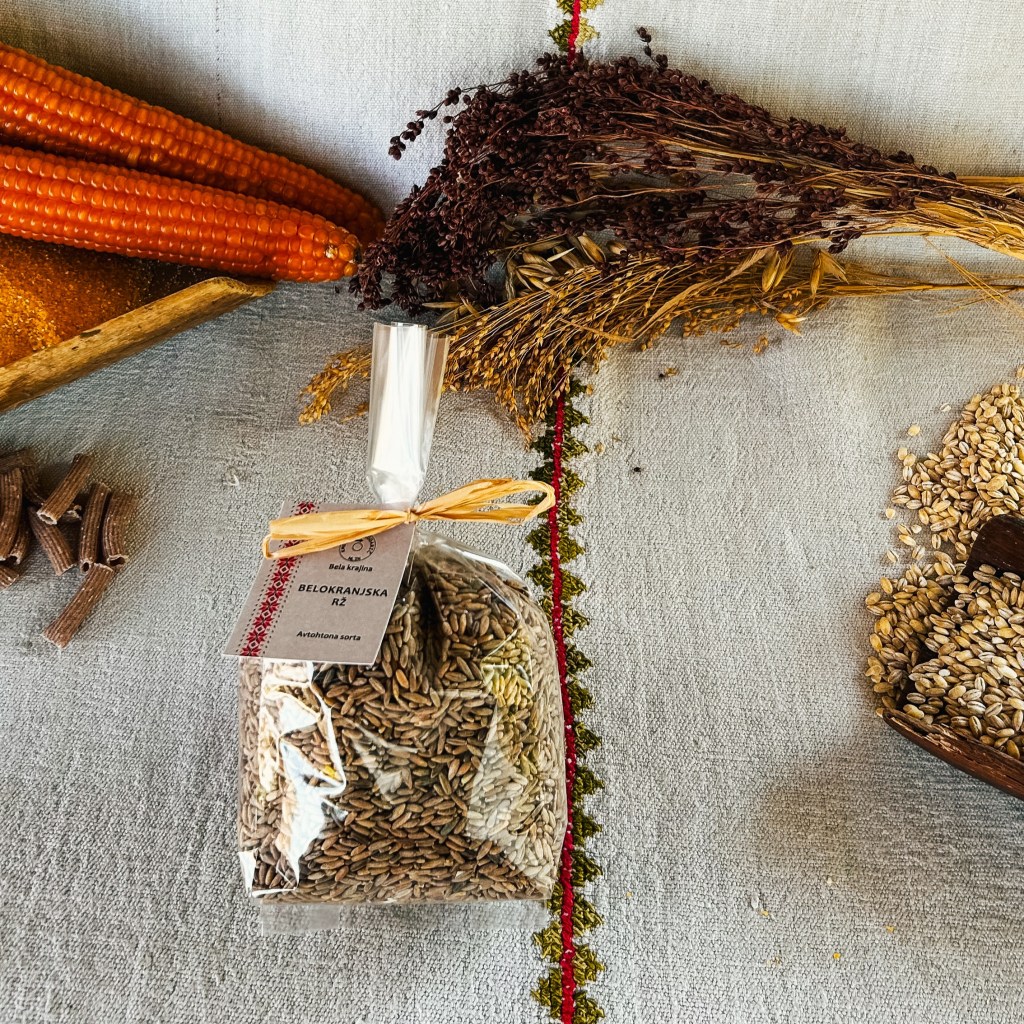 Rž je krušno žito iz družine trav, sorodno ječmenu in pšenici. Na njivi pa ga takoj prepoznamo po višjem steblu, saj zraste tudi do 2 metra. V primerjavi z drugimi žiti je bolj odporna poti boleznim in škodljivcem. Na naši kmetiji za naše izdelke uporabljamo avtohtono Belokranjsko rž, pridelano na naraven način. Odlikuje jo bogat, rahlo kiselkast okus, visoka vsebnost vlaknin in odličen pridelek tudi na manj rodovitnih tleh. Idealna za mletje moke in zdroba.